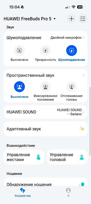 Система активного шумоподавления (ANC) работает одинаково уверенно на обеих платформах. Справедливости ради AirPods Pro 3 чуть более филигранно «вырезают» гул в специфических частотных диапазонах, но Huawei подобрался к лидеру максимально близко.