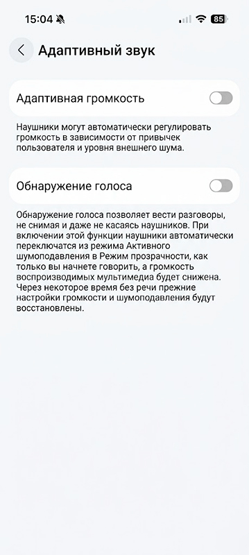 Режим прозрачности работает чисто — можно спокойно разговаривать, не вынимая «затычки» из ушей. Пространственное аудио (Spatial Sound) тоже на месте, хотя у Apple отслеживание поворотов головы всё ещё кажется более плавным и естественным.