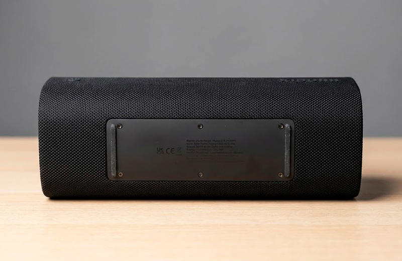 Интерфейс зарядки USB-C скрыт под резиновой заглушкой на задней панели. Рядом находятся кнопки усиления баса (Bass Boost), сопряжения Bluetooth и режима Party Mode, позволяющего объединить до 100 устройств.