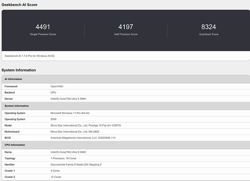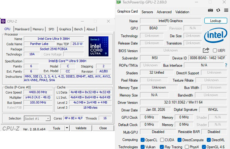 | Процессор | Intel Core Ultra 9 386H (16 ядер / 16 потоков, Panther Lake) |