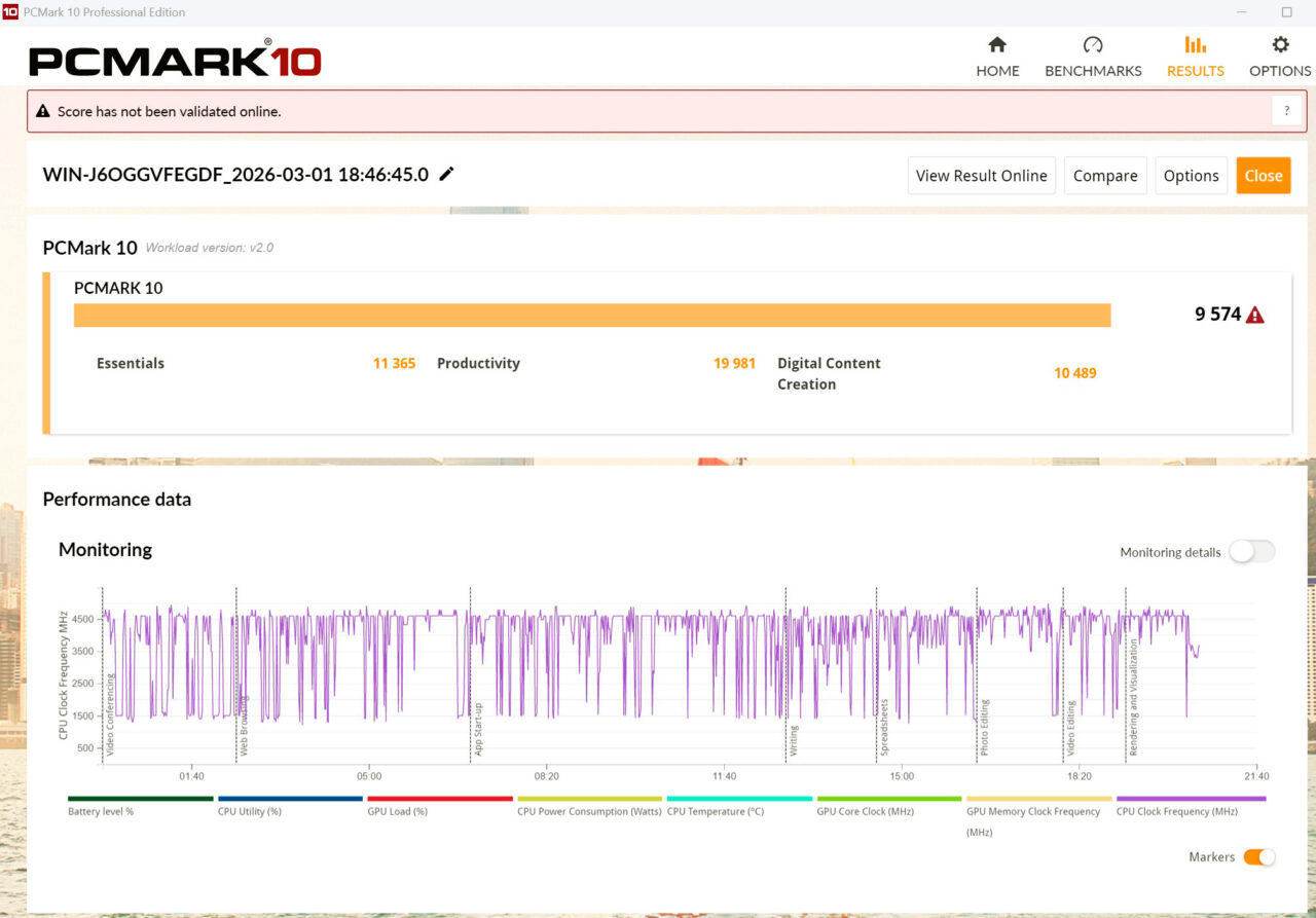 В синтетических стресс-тестах процессор предсказуемо разогревается до 100 градусов Цельсия и уходит в троттлинг, а вот графическое ядро держится в рамках 85 градусов. Клавиатурный блок при этом остаётся комфортно тёплым.