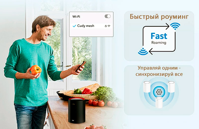 Если площади вдруг перестанет хватать, система позволяет в любой момент докупить ещё один узел и бесшовно встроить его в рабочую сеть. Один роутер Cudy M3000 обойдётся примерно в 4000 рублей, а базовый набор из трёх штук стоит от 10 500 рублей.