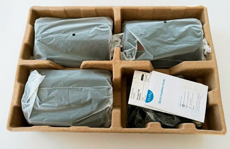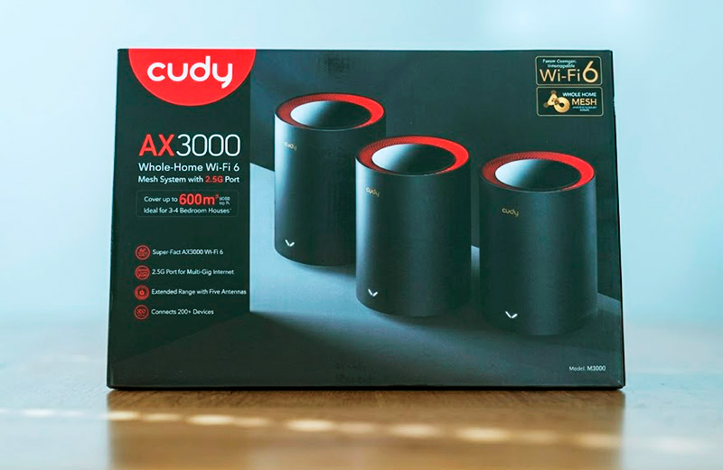 В тестовой версии, инженеры и дизайнеры Cudy сделали ставку на утилитарную тёмную гамму с выразительными красными акцентами. Это версия для азиатского и глобального рынка с надписью Cudy AX3000 на коробке. У нас на рынке, Cudy предлагает эту же систему M3000 в более эстетическом белом дизайне.