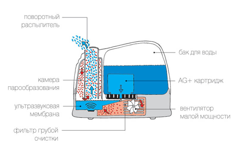 Принцип работы устройства основан на выделении ультрамелких частиц водяного пара, что снижает распространение минералов и бактерий до 99%. Имеется ночной режим с ограничением шума и настраиваемая подсветка. Если у вас есть дети, я рекомендую брать именно эту модель.