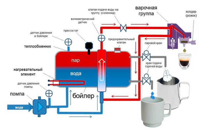 Чтобы понять, как кофемашины делают такие вкусные напитки, полезно посмотреть, как они устроены внутри.