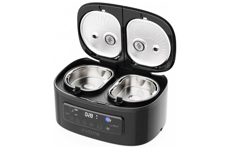 Чаши относительно небольшие, но позволяют одновременно готовить нескольких блюд без смешивания вкусов и запахов. Также у Garlyn MR-Duo 10 компактные размеры и много полезных функций вроде блокировки кнопок от детей. Наконец, чаши и крышки можно мыть в посудомоечной машине, хотя некоторые пользователи отмечают, что это может повлиять на долговечность покрытия.