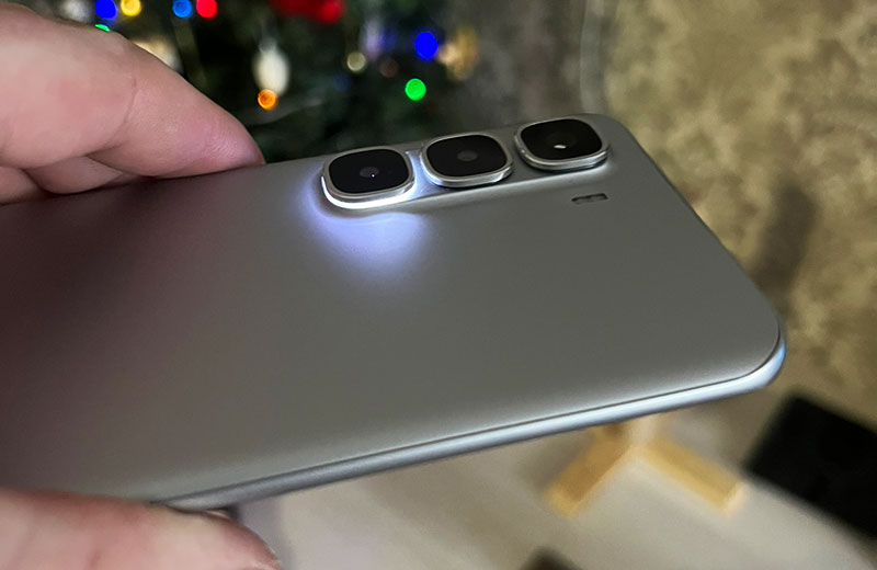 Модуль камер тоже любопытный: объективы не сгруппированы в массивный блок, а словно парят над корпусом, подчёркивая общую воздушность конструкции.