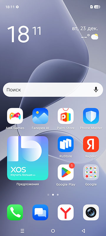 Хотя базовый пакет ПО выглядит сбалансированным, впечатление немного портит обилие лишних программ, как говорят в индустрии, «мусорное» ПО. В памяти смартфона зачем-то предустановлены несколько сторонних магазина приложений — Aha Games и Palm Store.
