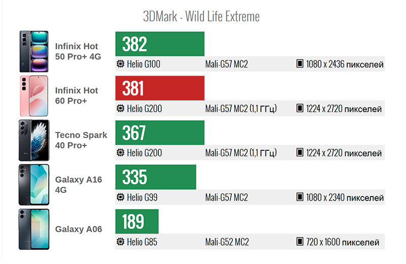 Ждать рекордов в бенчмарках от смартфона этого класса наивно — чудес в бюджетном сегменте не бывает. Вычислительная мощь Helio G200 предсказуемо держится на уровне народных любимцев на G100 и вечного Helio G99, разве что графика стала бодрее.