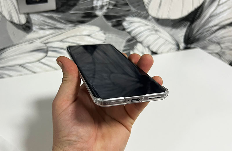Правда, здесь кроется небольшой подвох: из-за экстремальной тонкости и гладкости материалов смартфон может оказаться скользким. Комплектный чехол минимизирует риск падения, хотя крадёт часть восторга от тонкости корпуса.