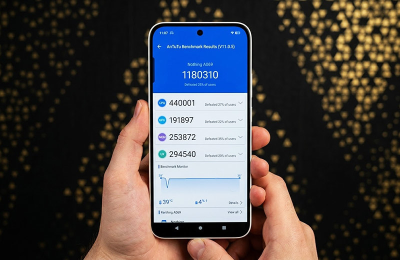 В синтетических тестах (вроде AnTuTu 11) прирост мощности по сравнению с прошлым поколением выглядит скорее символическим. Phone (4a) не рвётся в лидеры бенчмарков, но в реальной жизни работает стабильно.