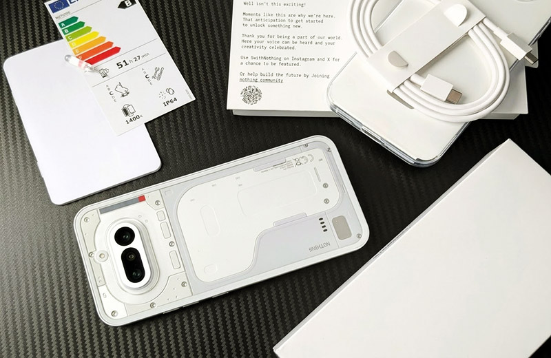 Внешне смартфон во многом копирует прошлогодний корпоративный стиль. Прозрачная спинка осталась на месте, как и фирменный интерфейс Glyph Bar — теперь это 7 сегментов и 63 мини-светодиода вокруг обновлённого блока камер. А корпус и рамки сделаны из поликарбоната.