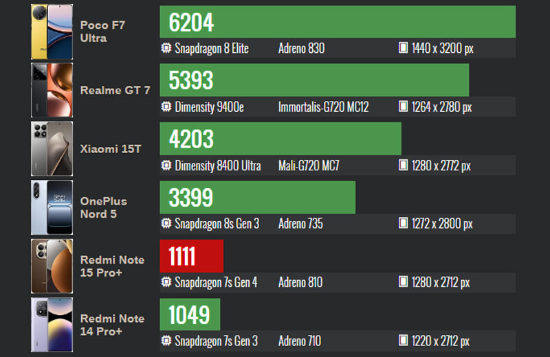 От модели Pro+ хочется более высокой скорости работы, потому что гаджет сильно уступает некоторым моделям Poco в этой ценовой категории. Если игры для вас важнее высокого качества съёмки и автономности, лучше взять Poco X7 Pro. Обычный Redmi Note 15 Pro тоже показывает схожую производительность, а стоит дешевле.
